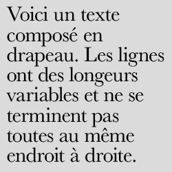 C’est un texte qui n’est ni justifié ni centré. Toutes les lignes sont alignées soit à gauche (on parle de fer à gauche), soit à droite (on parle de fer à droite).